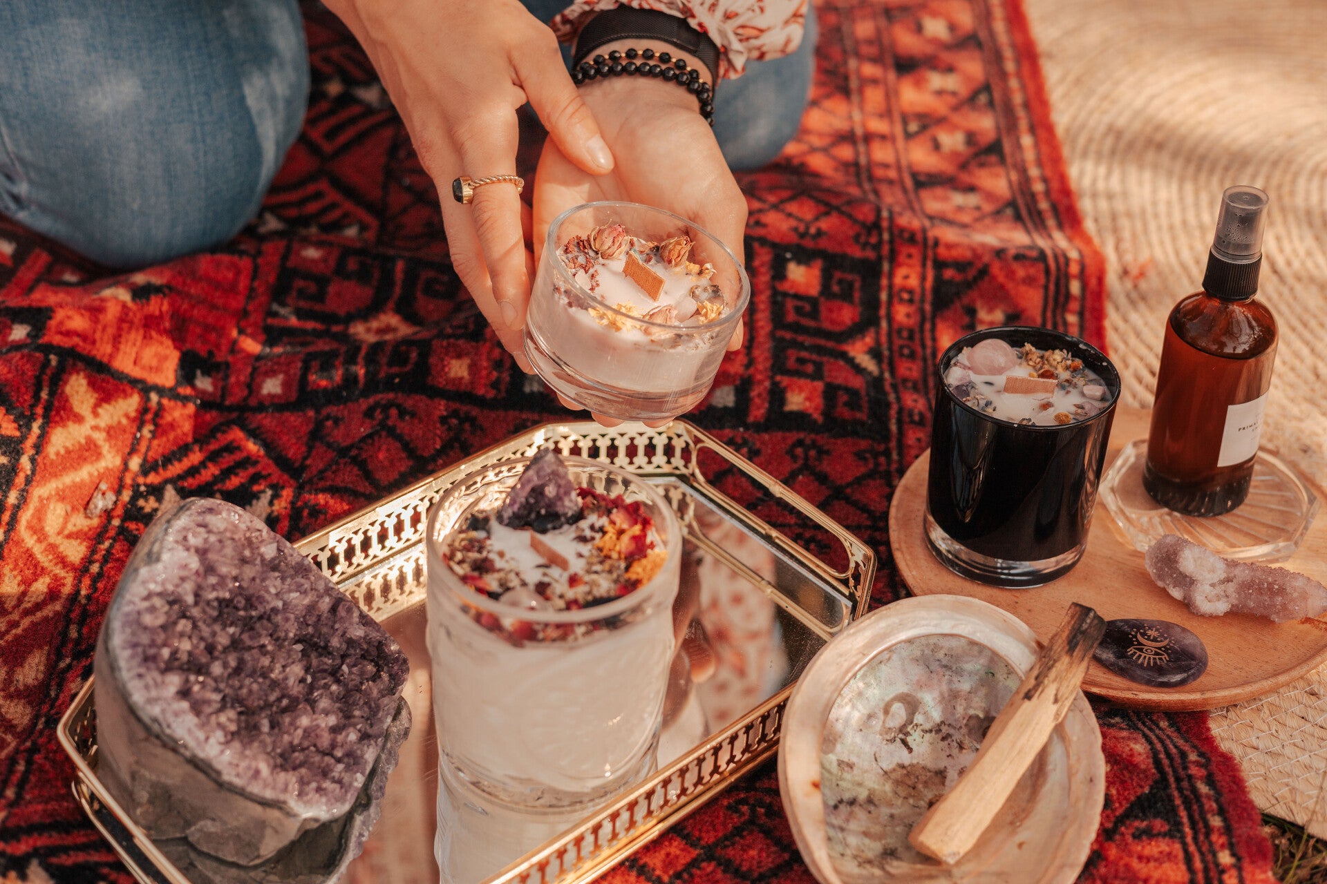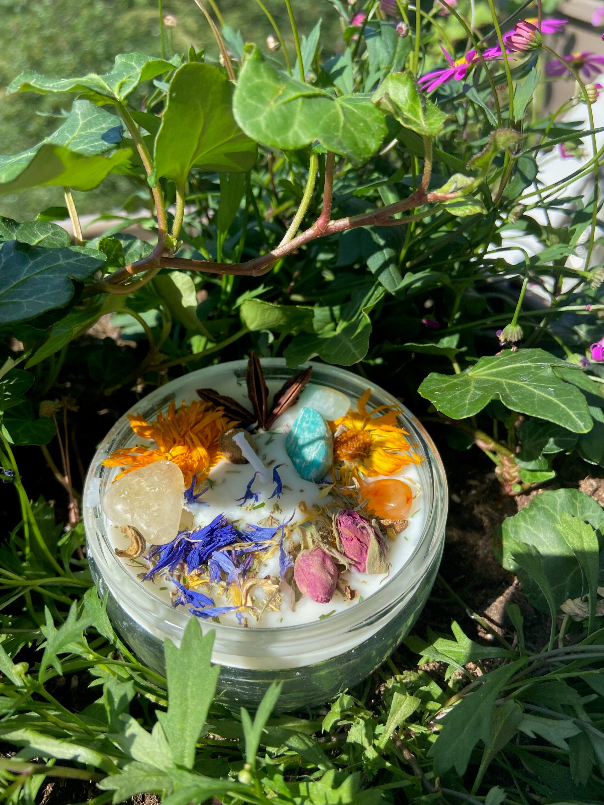Een kaars met jouw persoonlijke intentie. De kaars bevat naast de intentie essentiële oliën, kruiden en edelstenen. Deze ingrediënten worden afgestemd op de intentie en jouw energie zodat de kaars je optimaal kan ondersteunen!